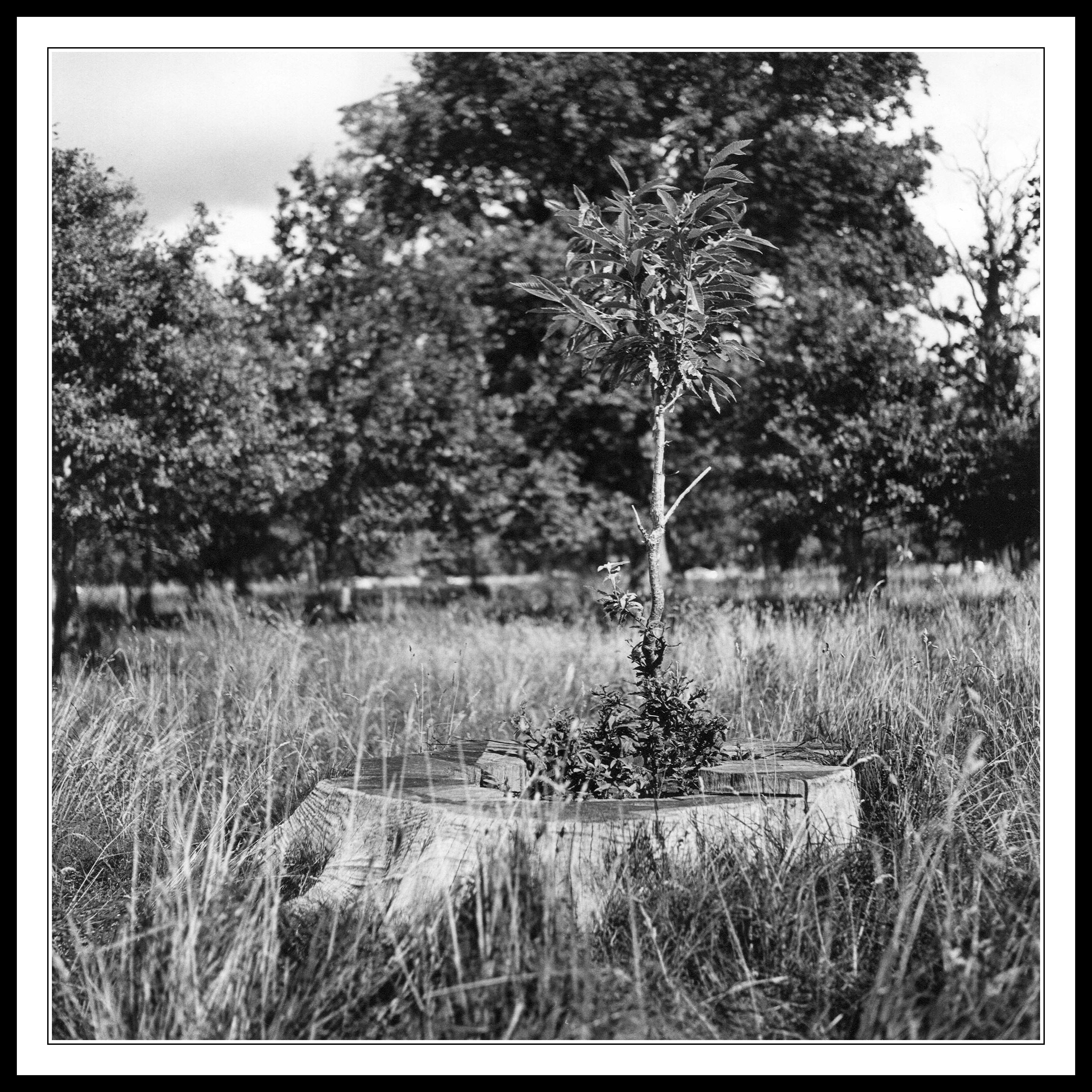 I found this very strange creature during the summer of 2013 when I was out exploring the wild expanses of the Fifteen Acres in the park. It was a beautiful sunny morning after a night of heavy rainfall in the park and I always like to take a stroll through the long grass and forested areas on days like this. I could see this tree stump off in the distance and at first assumed somebody had actually planted a large stick into the rotting core of the tree. As I got closer it became apparent that what I was looking at was actually a brand new tree growing up through the centre of the original tree stump. I’m guessing the tree was either cut down because it was dead or maybe it had become unsafe in some way. Little did the park maintenance staff know that this tree had no plans of going away too easily. I’ve no idea if the new growth is part of the original tree or some opportunistic stranger who found a nice damp place to propagate, nor do I have any idea how it managed to pick such an unusual spot to start it’s new life. I’ll be keeping my eye on it over the next few years to see how it manages to expand in such a small space, I wonder will it slowly crack the original trunk beneath it so expect some follow on photographs at some stage.